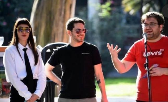 Presentación interactiva de Peces al grito de venganza. Desde mi posición no alcanzo a escuchar comprensivamente el relato que teje su autor, Gustavo Daniel, como si las palabras fueran mariposas que él va cazando con sus manos mientras habla. De pronto, reparte algunas cervezas. La gente se divierte.