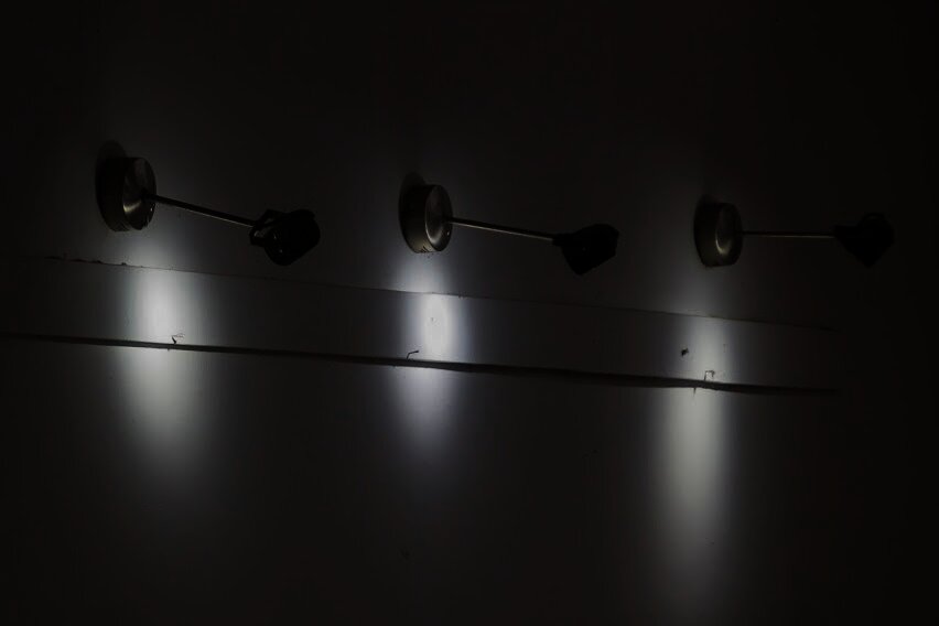 La pieza que ayudé a montar en el pasillo era una especie de lista, enumeración, mapa de decisiones, dibujos esquemáticos de todas las piezas que conforman la exposición: clavos iluminan focos, Zen 4 tv, altura alta visibilidad pintura, pintura en el depósito, puerta depósito, pausa ilusión, cinta línea rectacurva, mapa de decisiones, instrucciones xa una luz al final del túnel y reflector ilumina tomas corrientes x2. En la sala también estaba disponible un texto escrito por Andrés Hare, compañero de Diego en el programa de artistas, que nos brinda tres posibles caminos para acercarnos a la obra. El que elegí fue el último, donde toma el concepto matemático de Isomorfismo, que significa igualdad de formas, y escribe que la obra de Diego “se pliega al espacio en el que se monta e incluso lo suplanta, pero lo hace inadvertidamente, escondiéndose a plena vista”. Efectivamente, las piezas que conforman la instalación están casi escondidas y se camuflan en el espacio, convirtiendo la casa de la cultura de Tafí viejo en otra muy diferente pero casi exacta.
